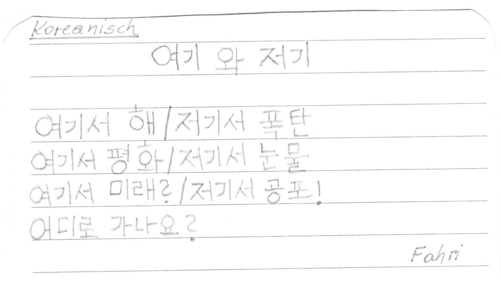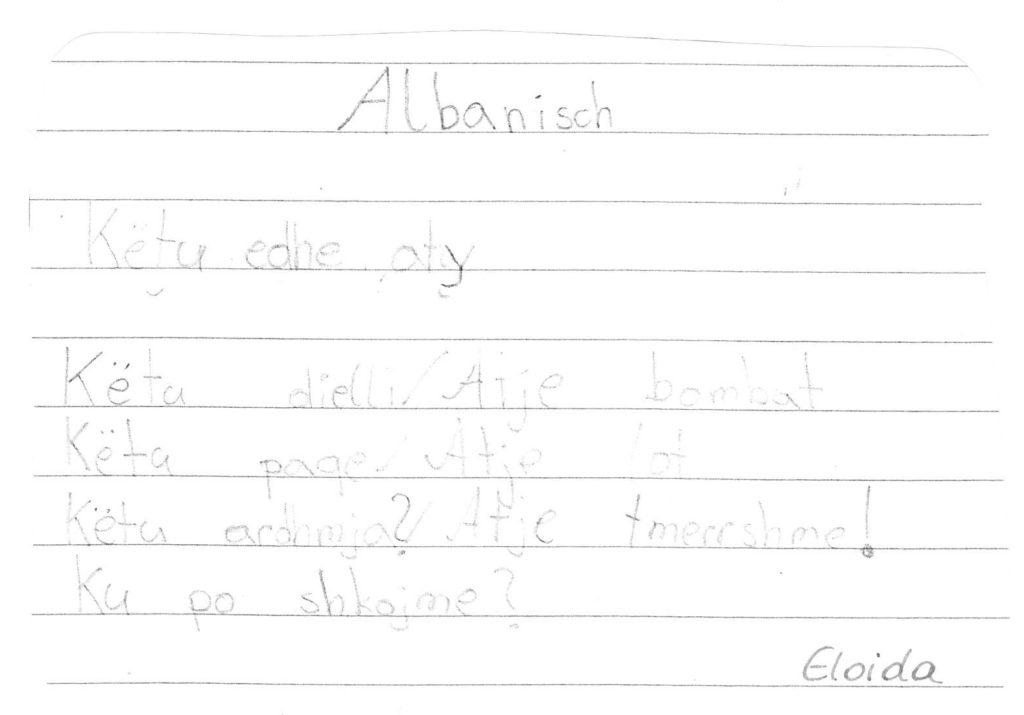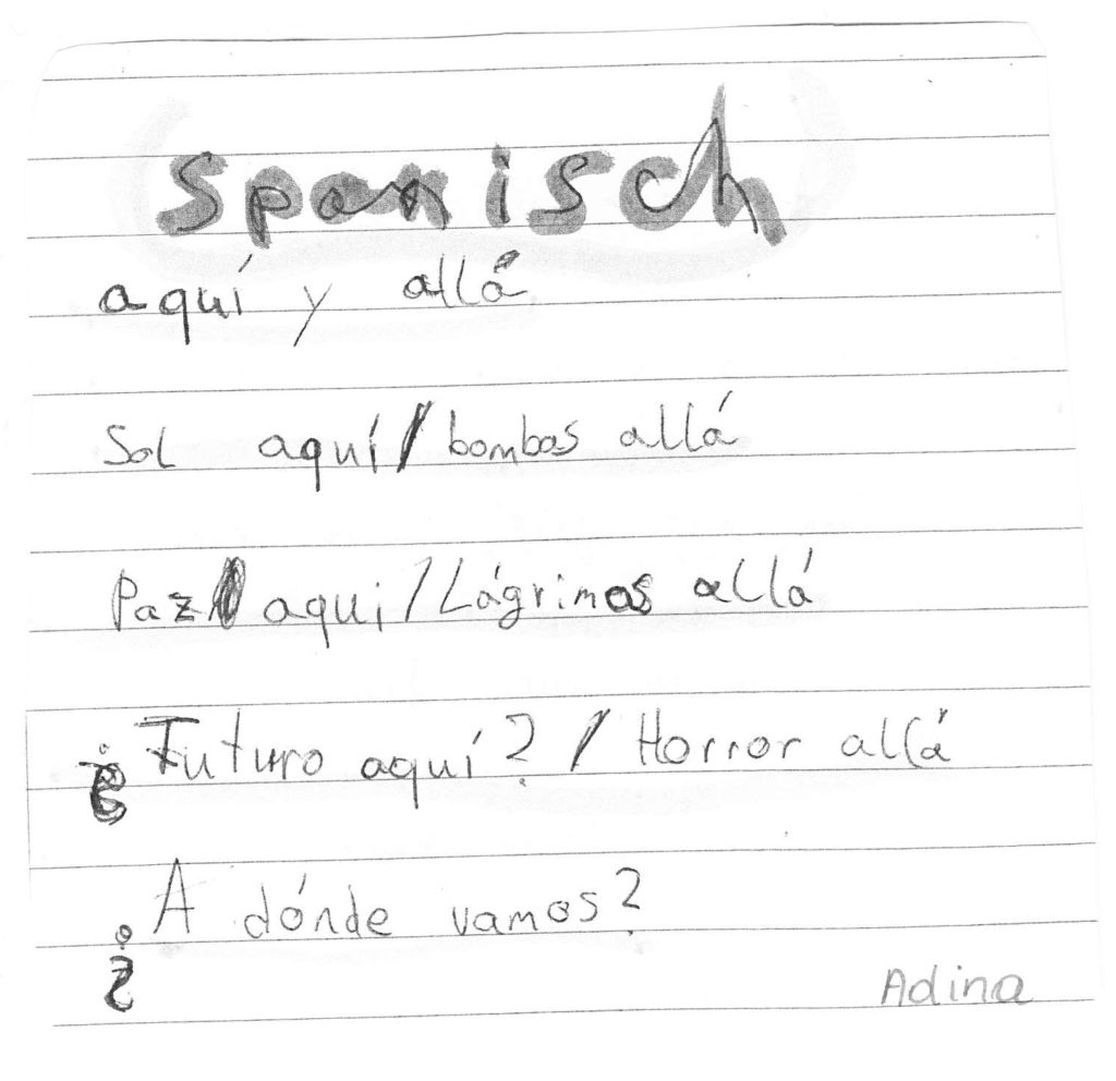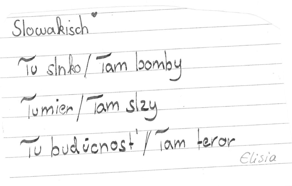 Auch wir, die 1b-Klasse der Mittelschule Dr. Renner in Graz, haben Ihr Gedicht im Unterricht besprochen. So eifrig wie noch nie wurde das Gedicht daraufhin als Hausübung von den Kindern – teils gemeinsam mit den Eltern und Geschwistern – in die unterschiedlichen Herkunftssprachen übersetzt. Rund fünfzehn verschiedensprachige Interpretationen des Gedichts kamen am Ende dabei raus, eine davon mithilfe einer Sprach-App in „Metacom-Symbolen“. Vielen Dank für diese Inititative!